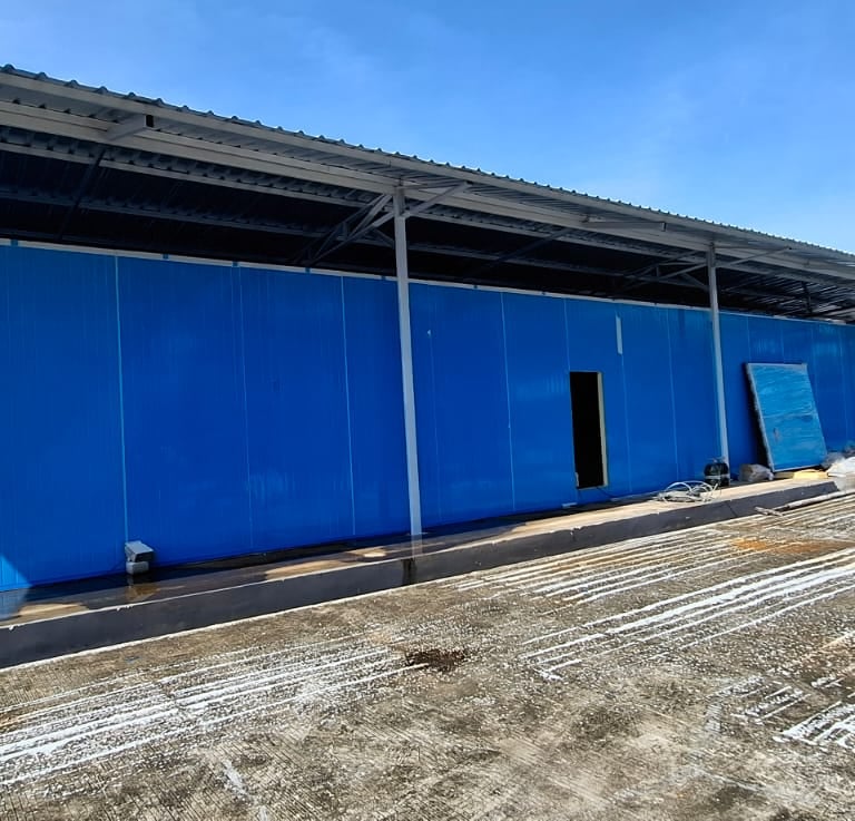 Material Prefabicated Panel Insulation ( ruangan pendingin ) menggunakan Sandwich Panel Polyurethane tebal 75 mm ( Dinding & Atap ) dan Polyurethane Sheet ( Lantai )
